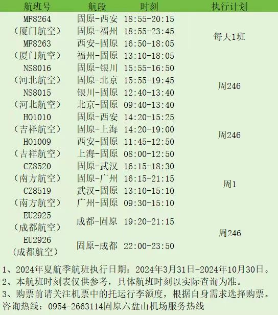 固原机场2024年夏航季航线新鲜出炉!