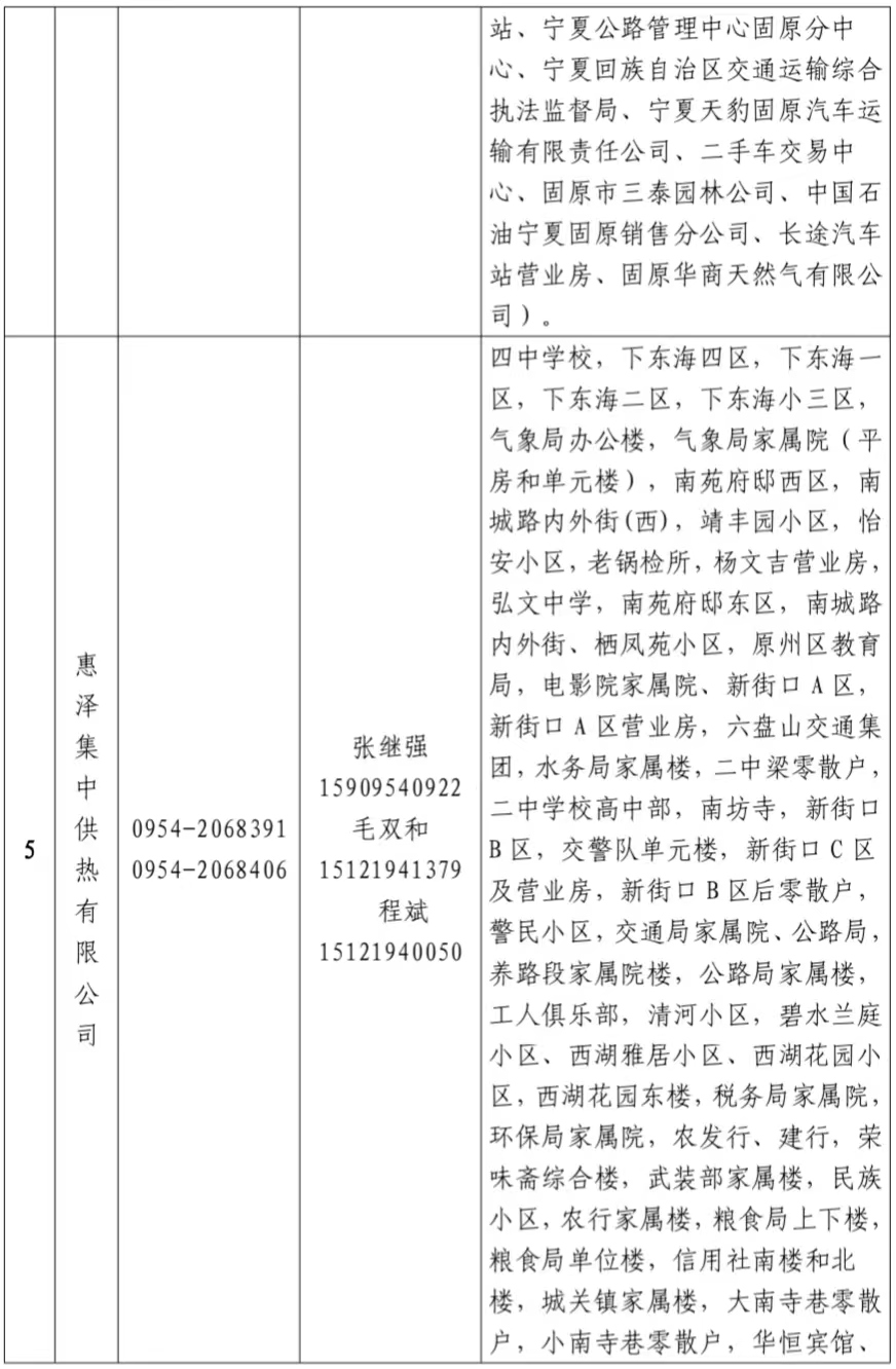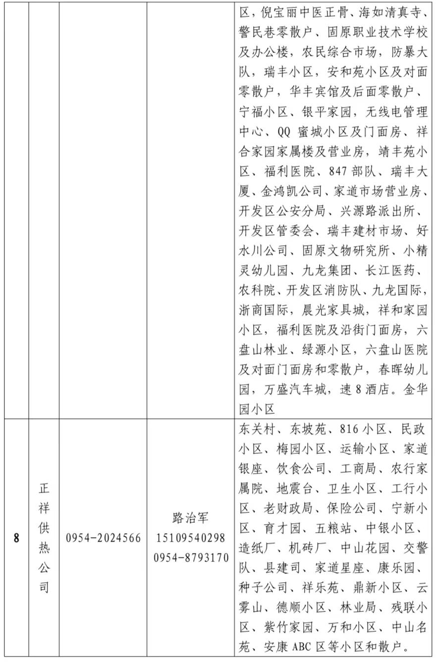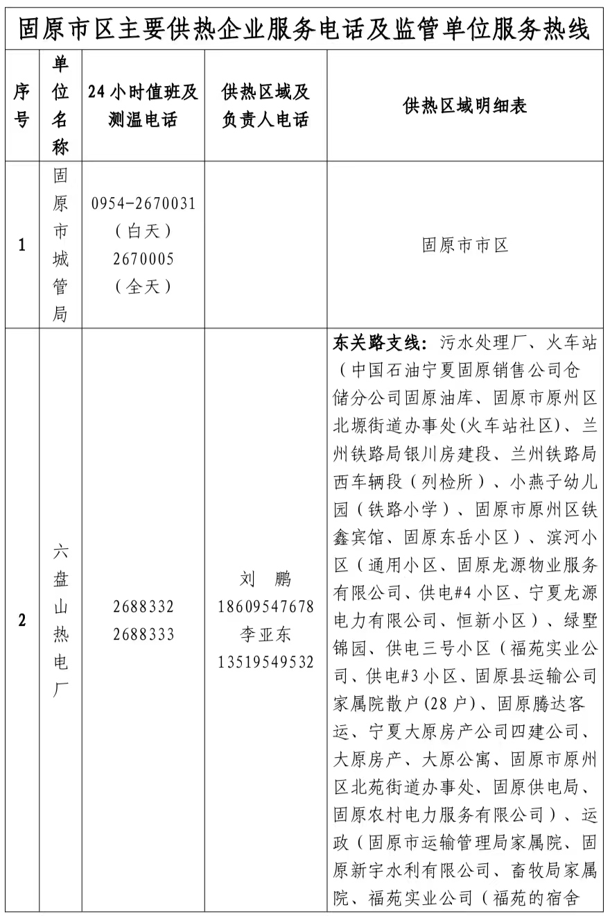 关于公布2024-2025年度固原市区供热服务电话的公告