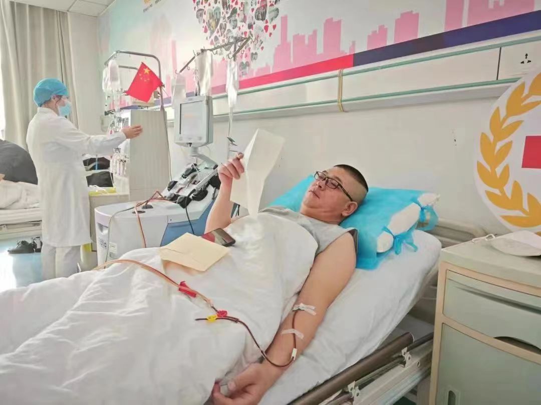 在造血干细胞提取过程中,毕丰江收到了医护人员转交的来自患者家长的感谢信,信中写道:“几十万分之一的概率,这是怎样的缘分,让我们在茫茫人海中找到了配型完全相合的您……捐献造血干细胞需要莫大的勇气和无私的精神,您的慷慨善举让我们这个小家庭又重新燃起了希望!”毕丰江完信后,脸上洋溢着轻松的微笑,近5个小时的造血干细胞提取,他顺利完成了捐献。