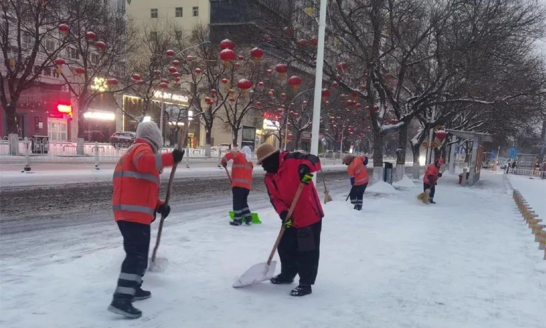 截至目前,市区两级城管部门共出动环卫工人、执法人员和干部职工1200余人,除雪车辆和机械设备200余台次,累计抛撒融雪剂300余吨,全力做好扫雪除冰工作,为市民群众安全出行保驾护航。