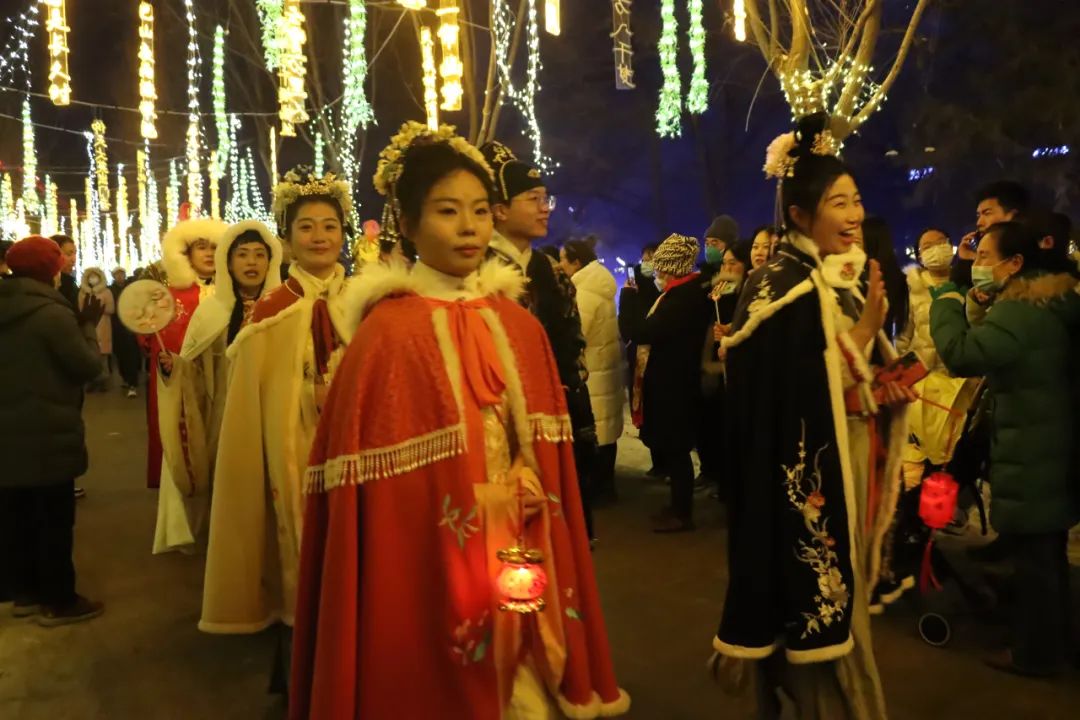 夜幕降临,公园被各色灯光点亮。市民游客相约,来到美丽的小西湖畔观看五彩斑斓的花灯、欣赏汉服小姐姐翩翩起舞,猜灯谜,品年味。古城的韵味与现代在这里交织,让人流连忘返,沉浸其中。
