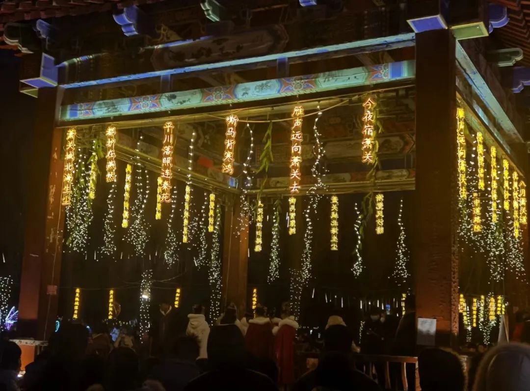 “萧关逢候骑”“八千里路云和月”“只愿君心似我心”等由古诗词做成的串灯让游客放慢脚步,驻足品读,一同感受古诗词文化的魅力。二十余名身着汉服和身着士兵盔甲的演员成为公园里一道靓丽的风景线,带领市民游客一同沉浸式游园。