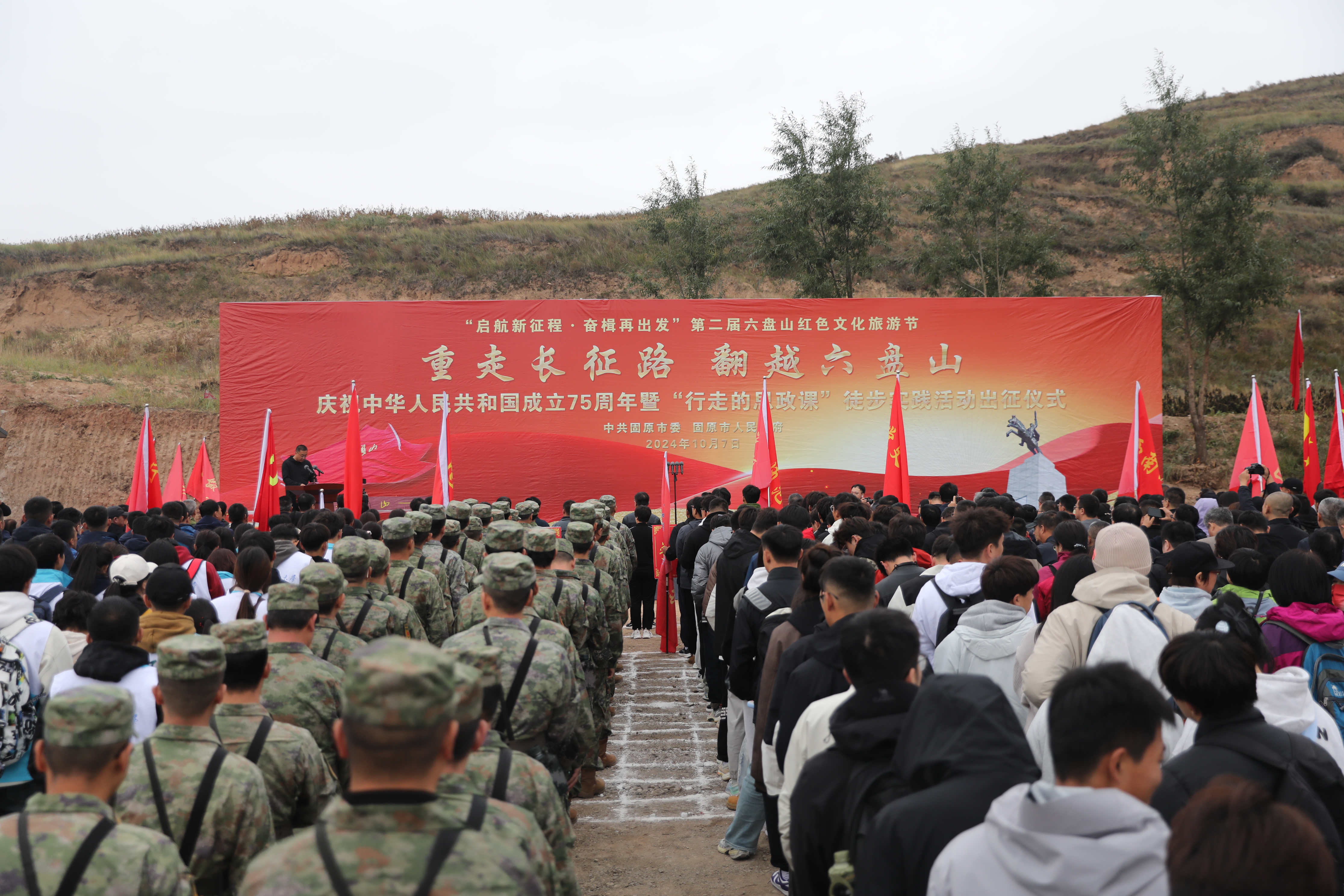 今年是新中国成立75周年,中央红军长征出发90周年。10月7日上午,固原市“重走长征路·翻越六盘山”庆祝新中国成立75周年暨“行走的思政课”徒步实践活动在原州区张易镇王套村启动。来自部分高校、部队、红军长征沿线城市有关代表和协会组织代表、自治区相关厅局和区内有关市县(区)代表及固原市各界代表沿着红军长征翻越六盘山原路线,追寻红色足迹,在“沉浸式学习”中深刻领悟长征精神,在“行走的思政课”中汲取永不懈怠的奋进力量,以实际行动践行新时代长征精神,不忘初心,走好新的长征路。市委书记滑志敏致辞并宣布活动启动。