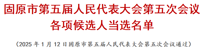 固原市第五届人民代表大会第五次会议 各项候选人当选名单
