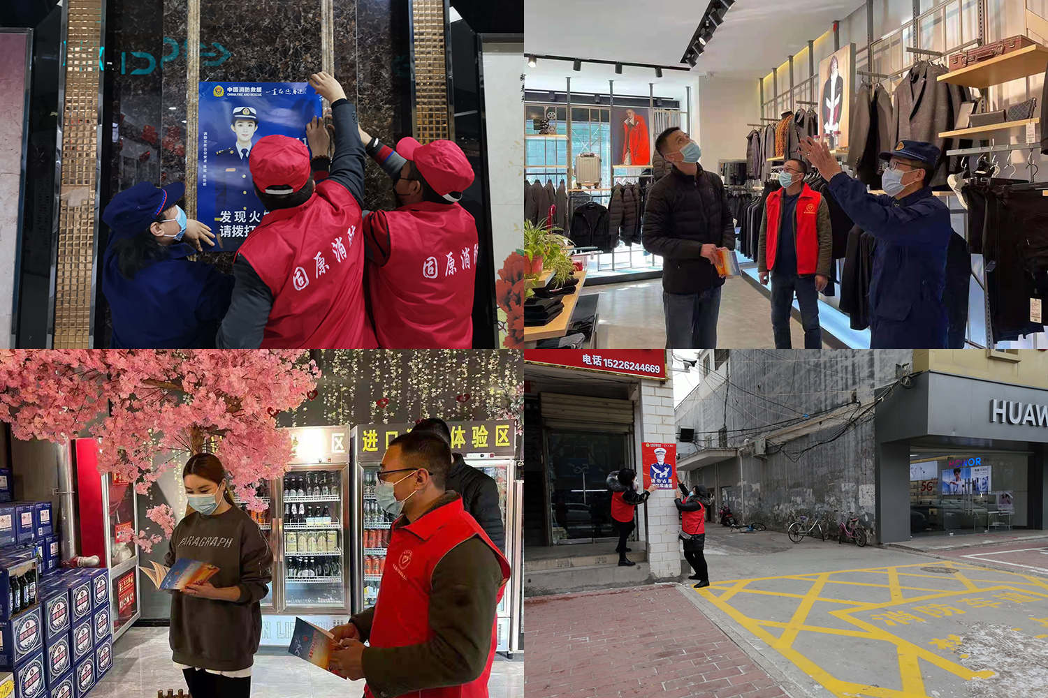 志愿者齐上阵助力节日宣传。支队各级积极发动消防志愿者、社区物业服务人员等各界力量,积极参与消防安全宣传活动,设咨询点、穿梭在大街小巷、集贸市场、商场等人员密集场所,向群众及商铺发放消防宣传手提袋,同时认真讲解生活中造成火灾的原因、安全用电等常识,并携手商场员工张贴消防“明星”宣传海报。