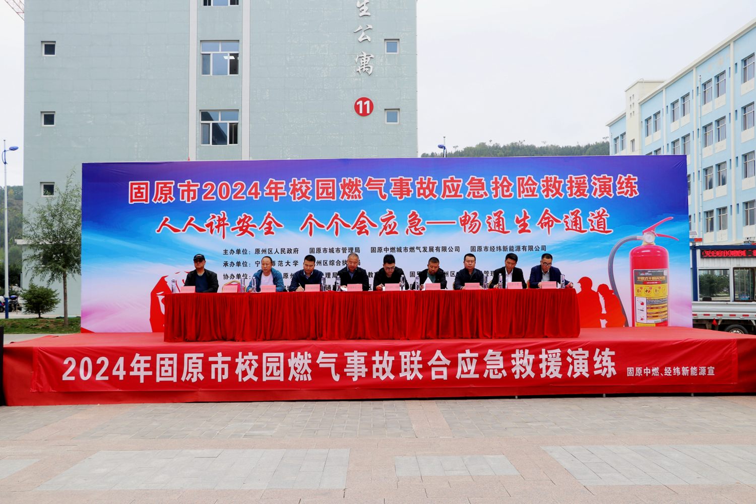 为进一步加强固原市燃气行业的安全生产工作,切实让燃气安全走进校园,营造让“每一个学生带动一个家庭,每个家庭带动整个社会的燃气安全防范意识”,创造良好的生活环境;同时提高企业及社会救援力量的应急处置能力、应急保障能力、救援能力、防灾减灾救灾能力及企业安全生产防患意识,有效防范和坚决遏制重特大事故发生。9月12日,固原支队联合多部门开展2024年校园燃气事故应急救援演练。