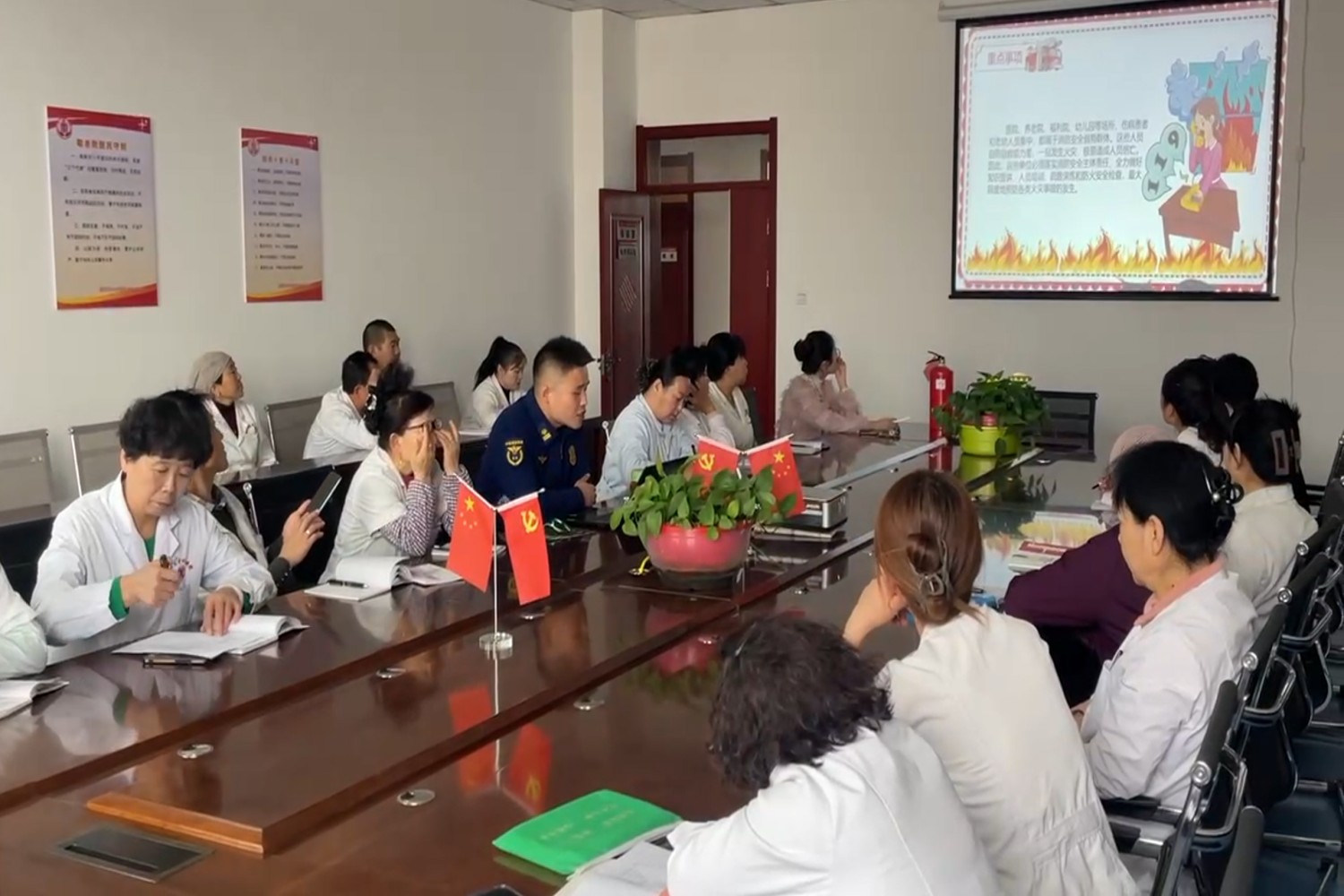 其间,宣传员还组织消防志愿者为老人们发放了消防安全宣传资料,在养老服务机构显眼位置张贴消防宣传海报并拍摄消防安全提示宣传片,并通过LED显示屏循环播放消防安全提示的方式提醒老人们要注意用火用电安全,不私拉乱接电线,不卧床吸烟,不使用大功率电器等。