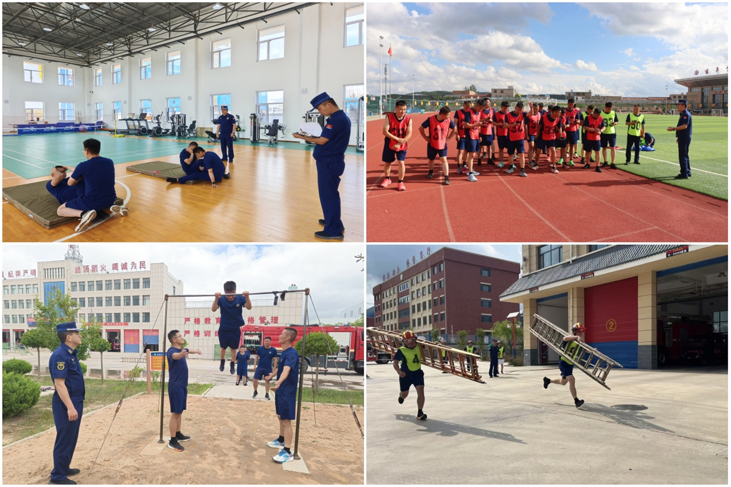 此次阶段性考核按照大队、消防站两个组别进行考核。其中大队考核采取体能达标等级计分,全员参加,考核科目为3000(1500)米跑、单杠引体向上(跳绳)、仰卧起坐3项。消防站按照基础体能、单兵技能、班组技能、装备操作等4个考核类型,共涵盖5000米、单杠卷身上、60米肩梯跑、廊式推进、手台机动泵操作、百米消防障碍、纵深灭火救人操、枪炮协同进攻操等操法科目。指挥员参加所有科目考核,消防员抽5人参加考核。