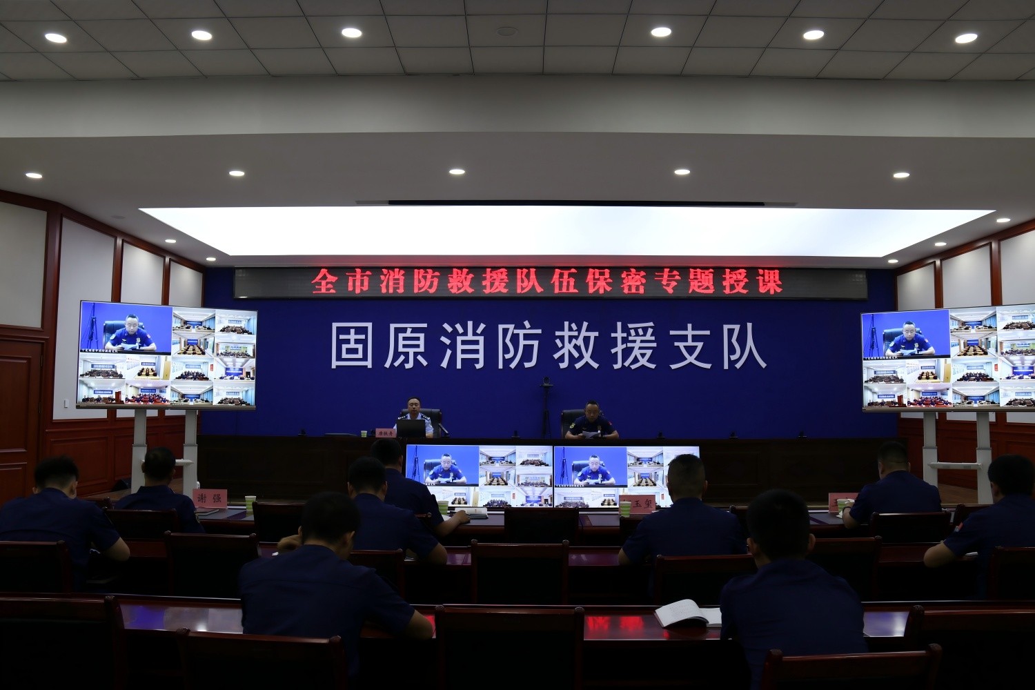 为提升全市消防救援队伍保密意识,坚决做好中阿博览会、抗战胜利80周年纪念活动期间保密安全工作,8月26日,固原支队邀请市国家安全局专家来队开展保密安全专题授课,支队除执勤值班外的全体指战员、政府专职消防员、消防文员参加。