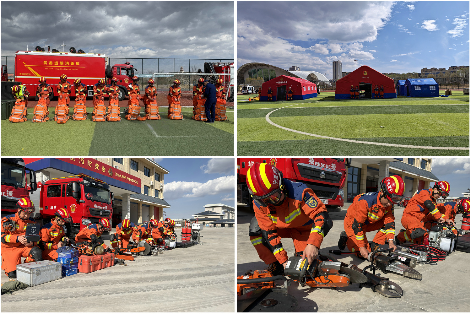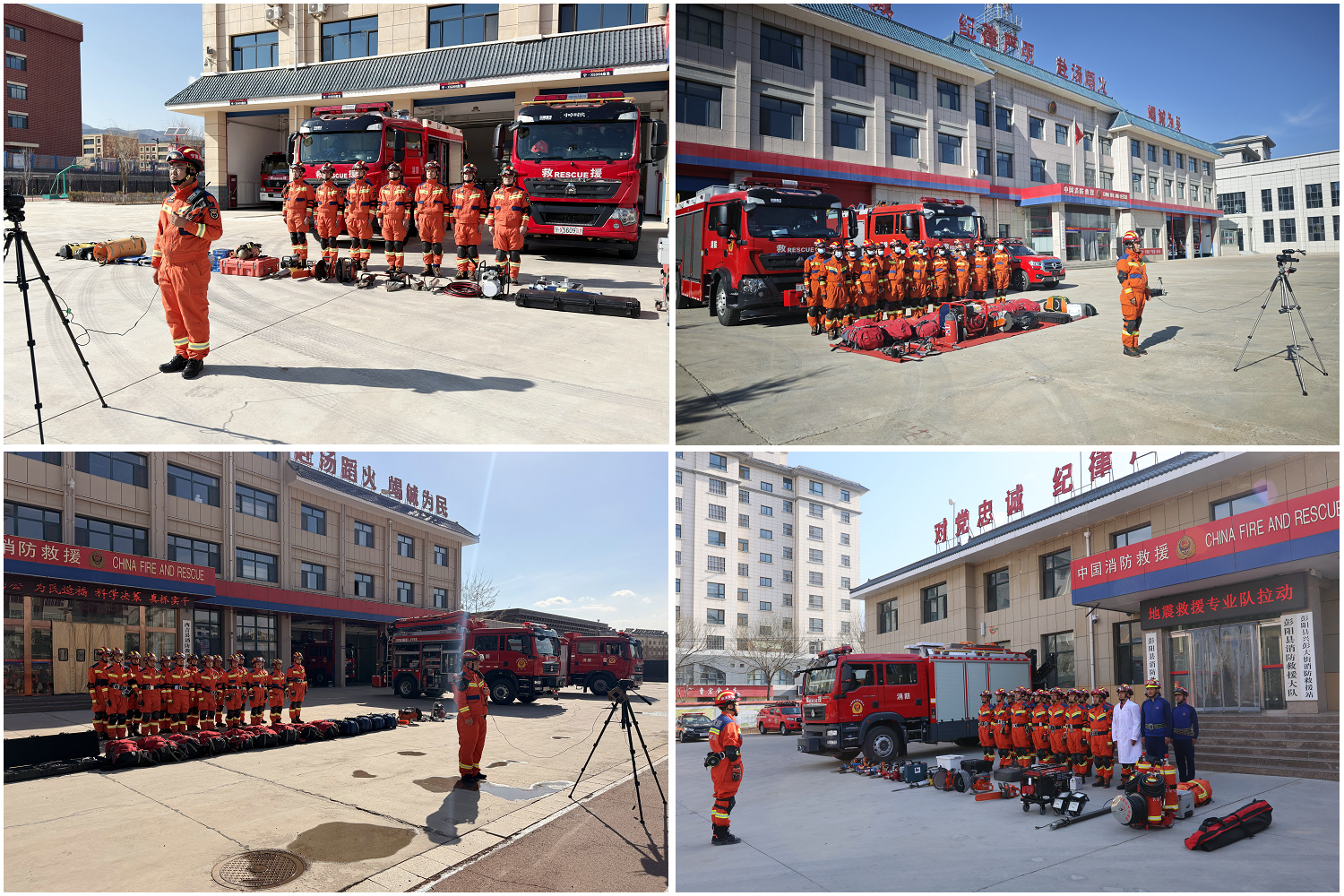 抵达现场后,消防救援人员迅速搭建前沿指挥部,与各联动单位召开作战会议,划定作业区域,分配救援任务。指挥人员通过视频画面详细查看了各大队人员集结情况,核对人员到岗名册,确保全体救援人员迅速到位、整齐列队。同时,确认图传、卫星电话等装备随时可用;对装备模块化储备箱进行开箱点验,检查破拆、顶撑、照明等救援器材以及个人防护装备的配备情况与维护状态;对队员着装规范、精神面貌等队伍形象进行细致检视。