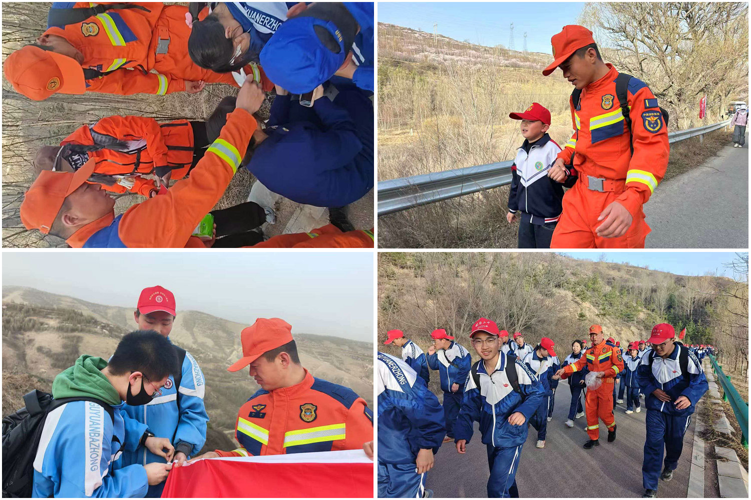 4月3日凌晨,夜露未晞,晨光初绽。当城市还在沉睡,新训队已整装列队,与初高中师生一同踏上了前往任山河烈士陵园的百里徒步征程。这是一堂行走在红色热土上的思政课,是一次用脚步丈量信仰、用行动传承精神的初心之旅。凌晨的夜色中,党旗与消防救援旗在队伍前方高高飘扬,映照着消防员们坚毅的背影。从深夜集结到破晓前行,数十公里的山路蜿蜒曲折,体力的极限挑战如影随形。但“火焰蓝”的身影始终冲锋在前,他们发扬吃苦耐劳、敢打必胜的优良作风,全程为师生队伍保驾护航:主动搀扶体力不支的学生,帮着背负沉重的行囊,在陡坡路段细心搀扶,用温暖的守护为青春学子筑牢安全防线。