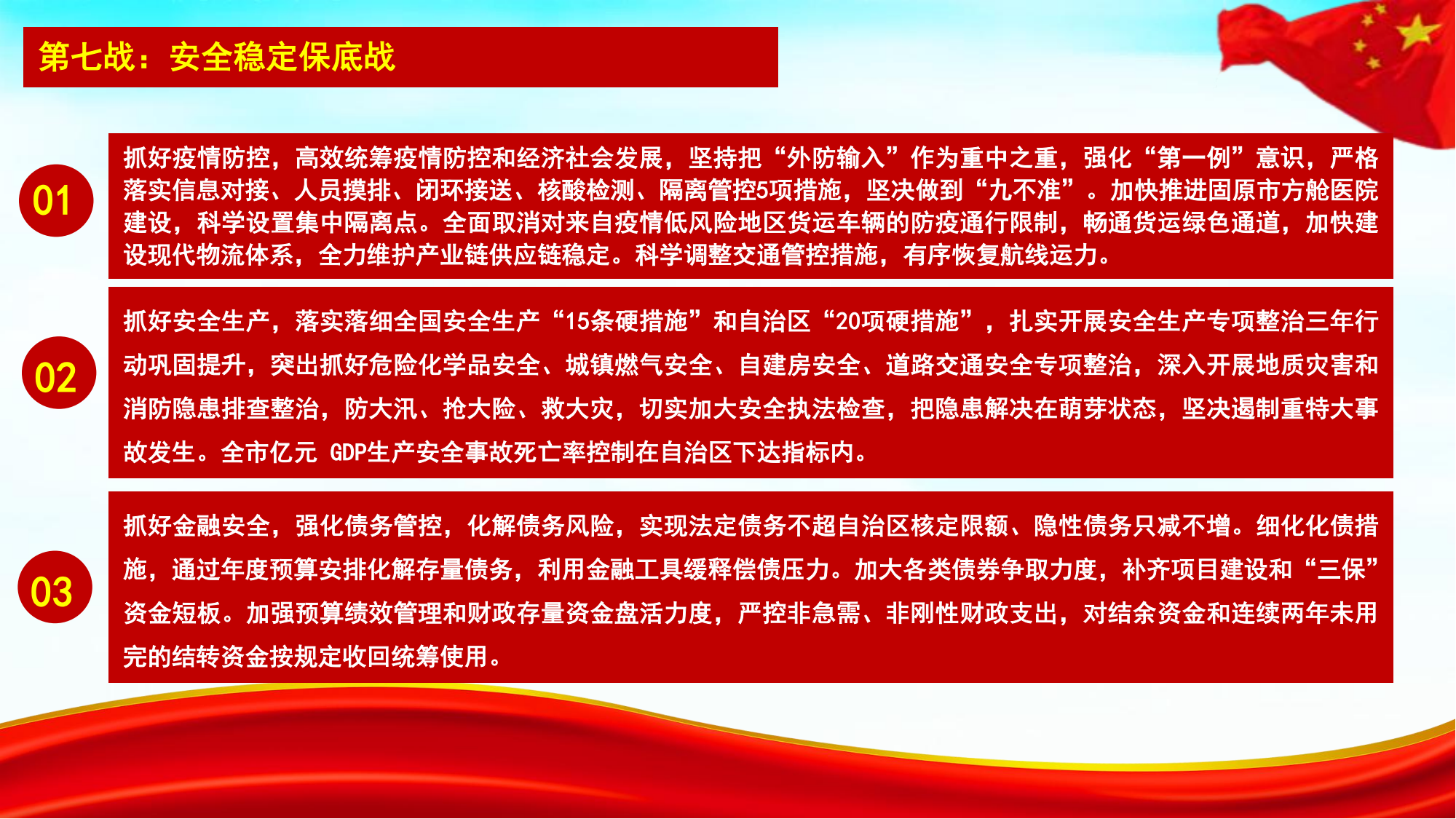 | 标 题: | 图文解读:固原市人民政府办公室印发《关于坚决打好“七大战役”全力以赴稳经济保增长促发展实施方案》的通知 | ||