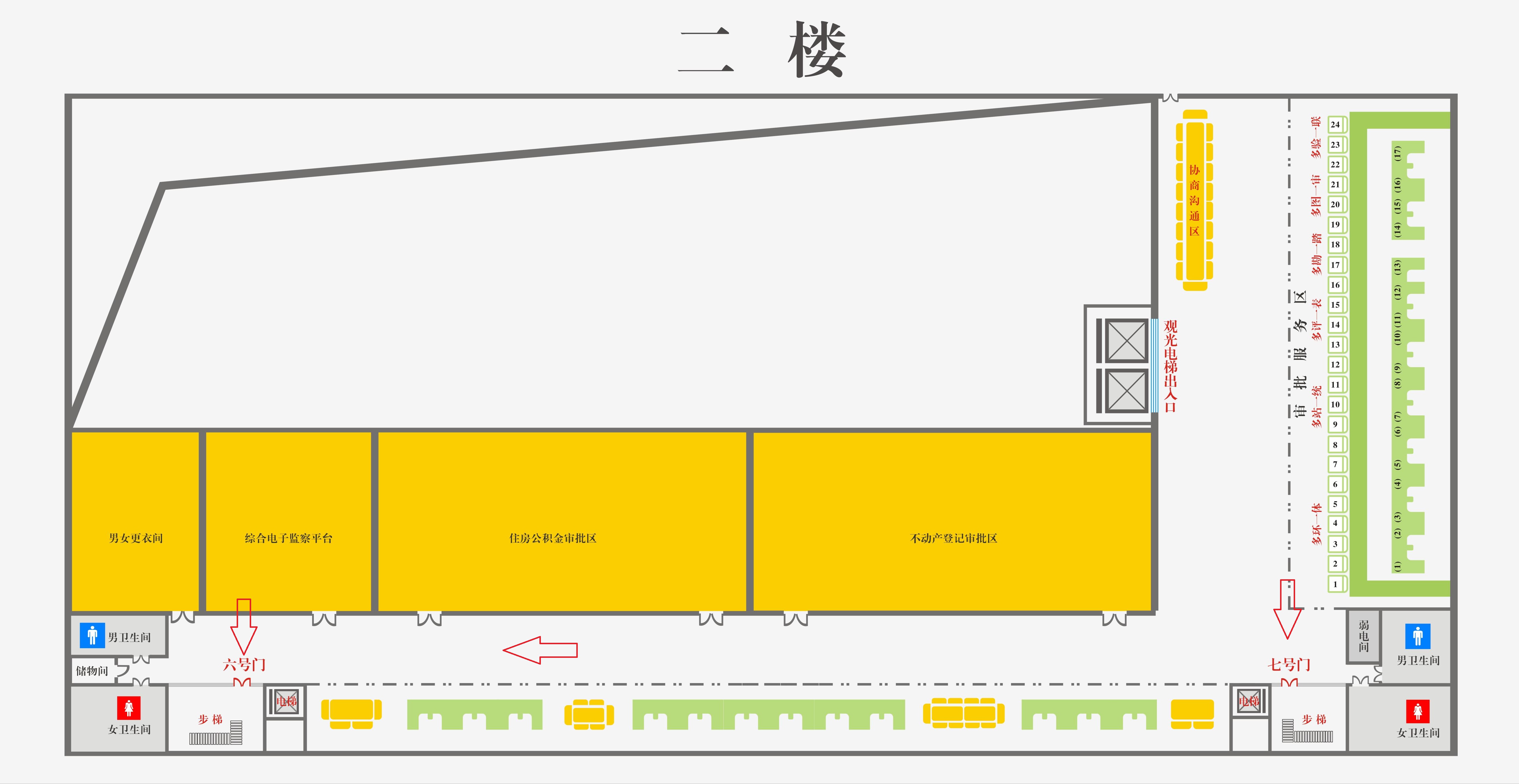 接到突发事件报告后,突发安全事故应急处置领导小组第一时间组织人员撤离现场,并通知保卫人员打开所有安全通道门。安排人员快速有序撤离,按照一楼大厅人员按照东侧窗口工作人员走一号门和二号门、办事群众走三号门和四号门、西侧窗口工作人员走四号门和五号门的方式快速依次离开大厅;二楼人员在 安全员组织下,按照大厅办事区人员走七号门、不动产和住房公积金办理区走六号门的顺序,按两路纵队沿楼梯两侧快速下楼,按就近原则撤离。撤离安全通道如附件所示。