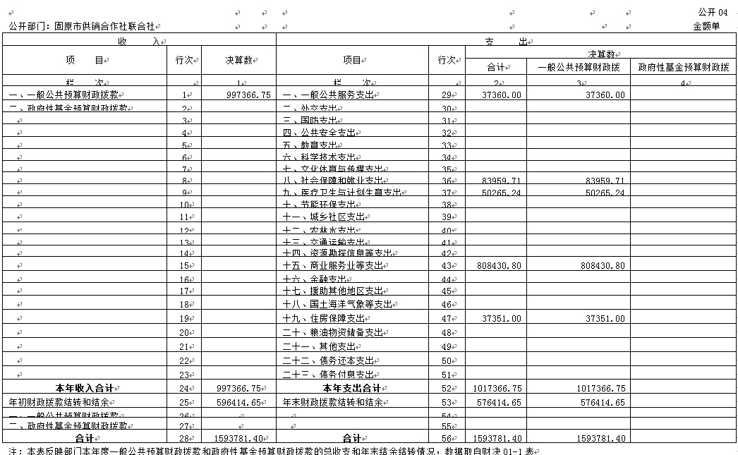 公开部门:固原市供销合作社联合社 金额单位:元