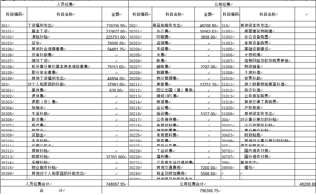 2018年度一般公共预算财政拨款基本支出796306.75元,其中:人员经费748097.95元,公用经费48208.80元。支出具体情况如下:
