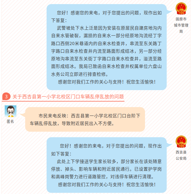 固原阳光政务回应民生热点问题(第46期)总第355期