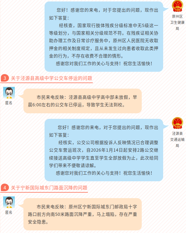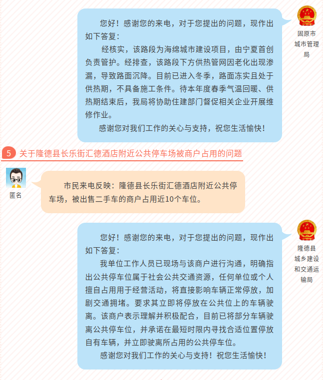 固原阳光政务回应民生热点问题(第4期)总第357期