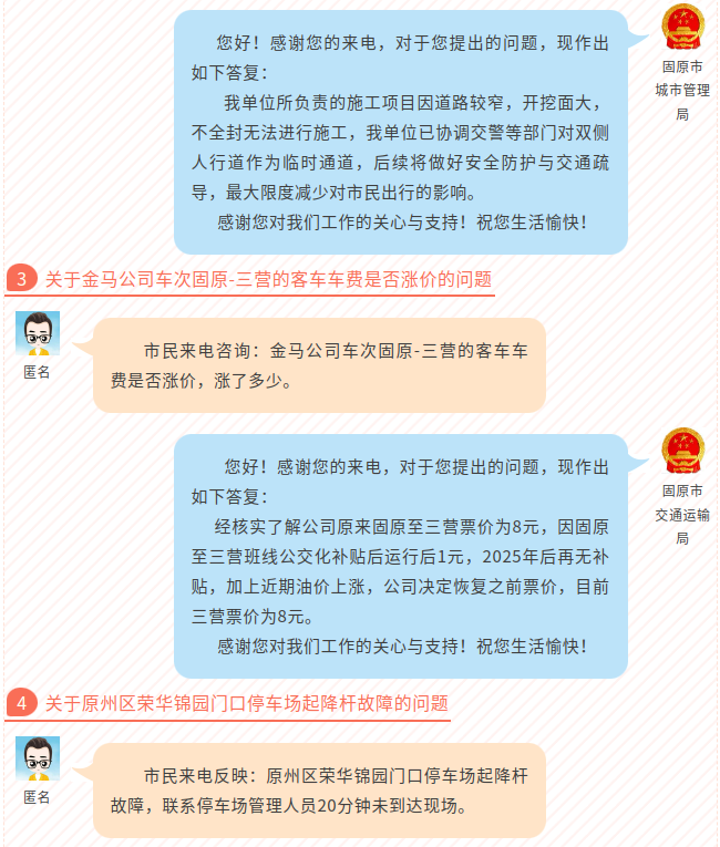固原阳光政务回应民生热点问题(第11期)总第364期