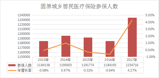 2017年底,固原市职工基本医疗保险参保人数为8.68万人,比上年增加0.23万人,增长2.8%;比2013年增加0.41万人,年平均增长3.5%。