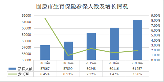 截至2017年底,固原市生育保险参保人数达到6.12万人,比上年增加0.11万人,增长1.83%;比2013年增加0.39万人,年平均增长1.17%。