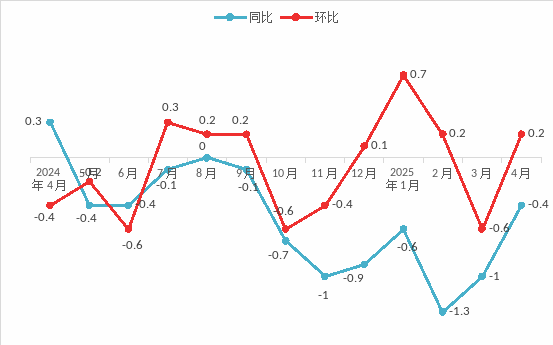 固原调查队价格监测数据显示:2025年4月份,固原市居民消费价格环比上涨0.2%,同比下降0.4%。(见图1)