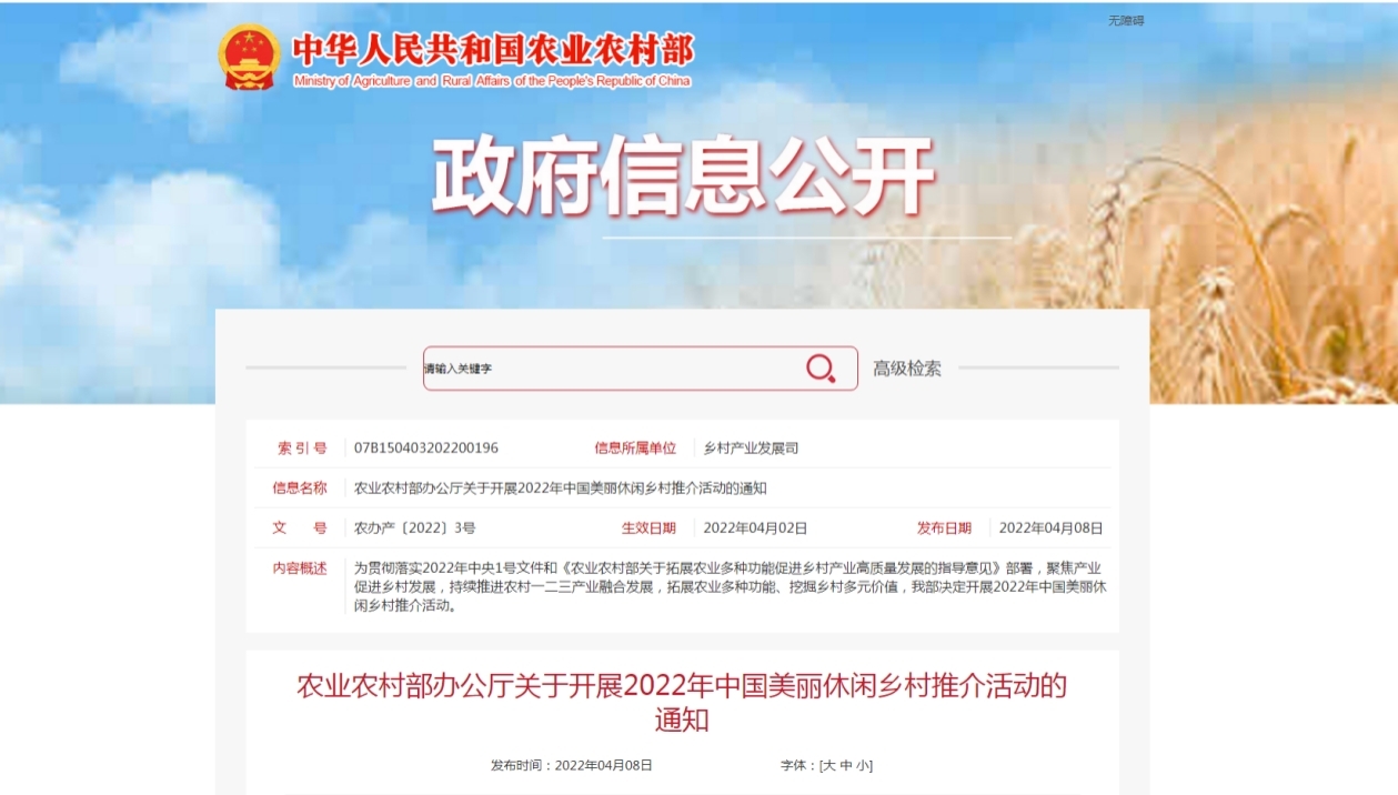 【主管部门】农业农村部乡村产业发展司
