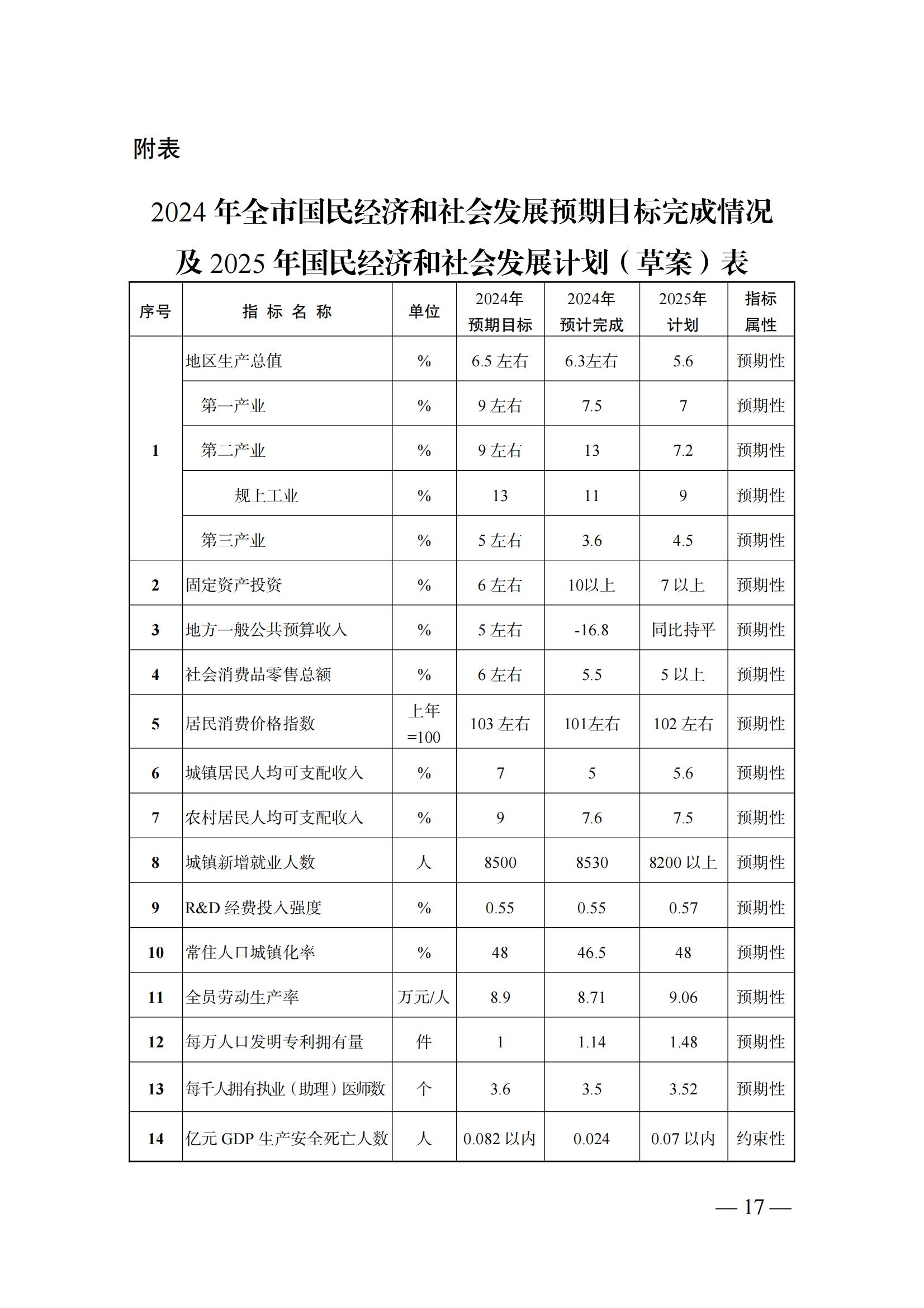 | 标 题: | 关于2024年全市国民经济和社会发展计划执行情况与2025年国民经济和社会发展计划(草案)的报告 | ||