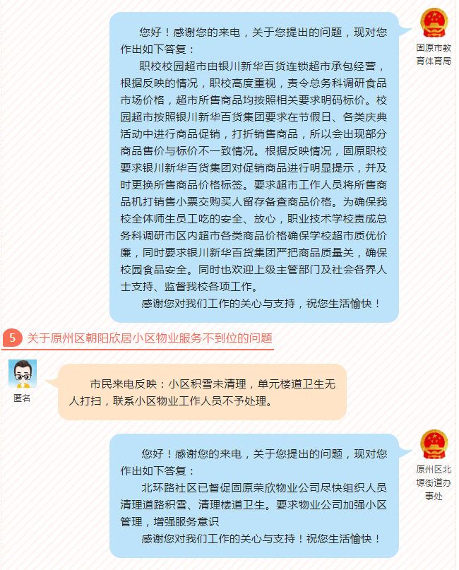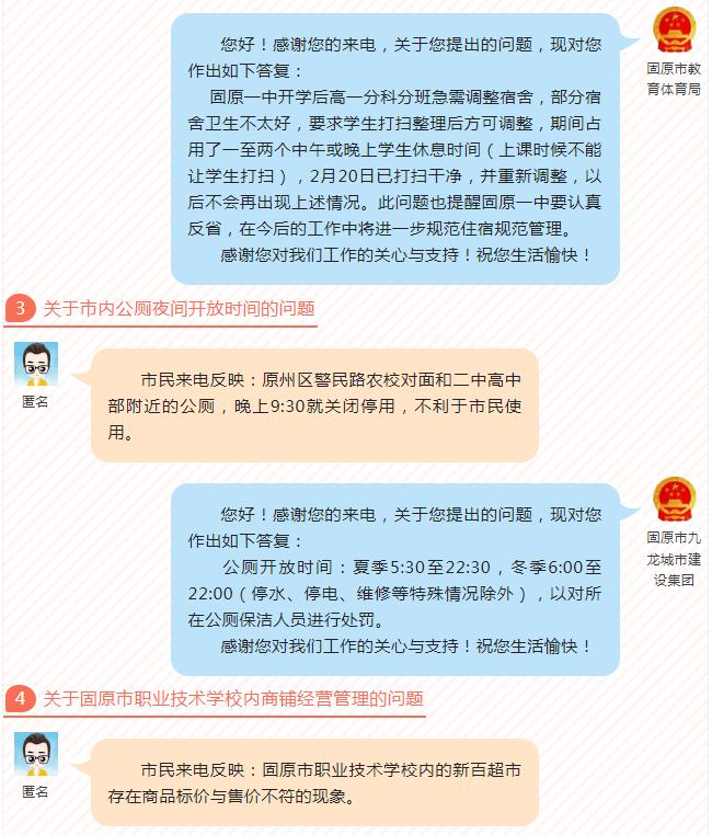 固原阳光政务回应民生热点问题(第8期)总第254期