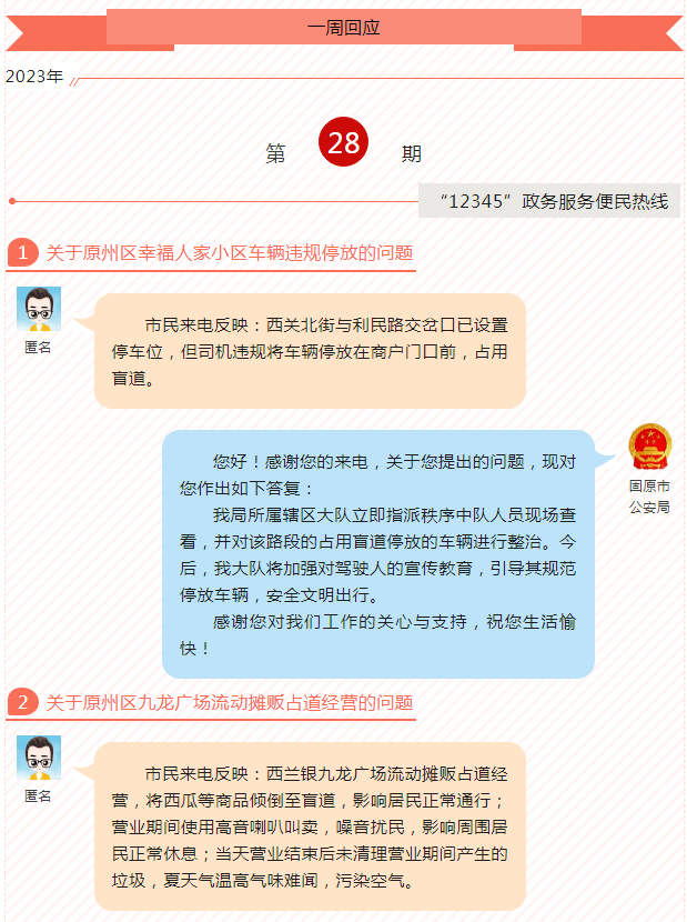 固原阳光政务回应民生热点问题(第28期)总第274期