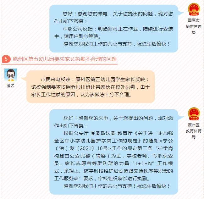固原阳光政务回应民生热点问题(第36期)总第282期