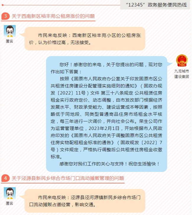 固原阳光政务回应民生热点问题(第43期)总第289期