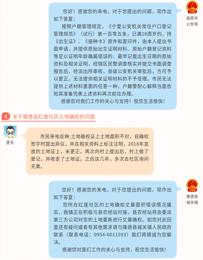 固原阳光政务回应民生热点问题(第38期)总第331期