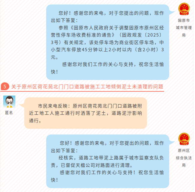 固原阳光政务回应民生热点问题(第39期)总第378期